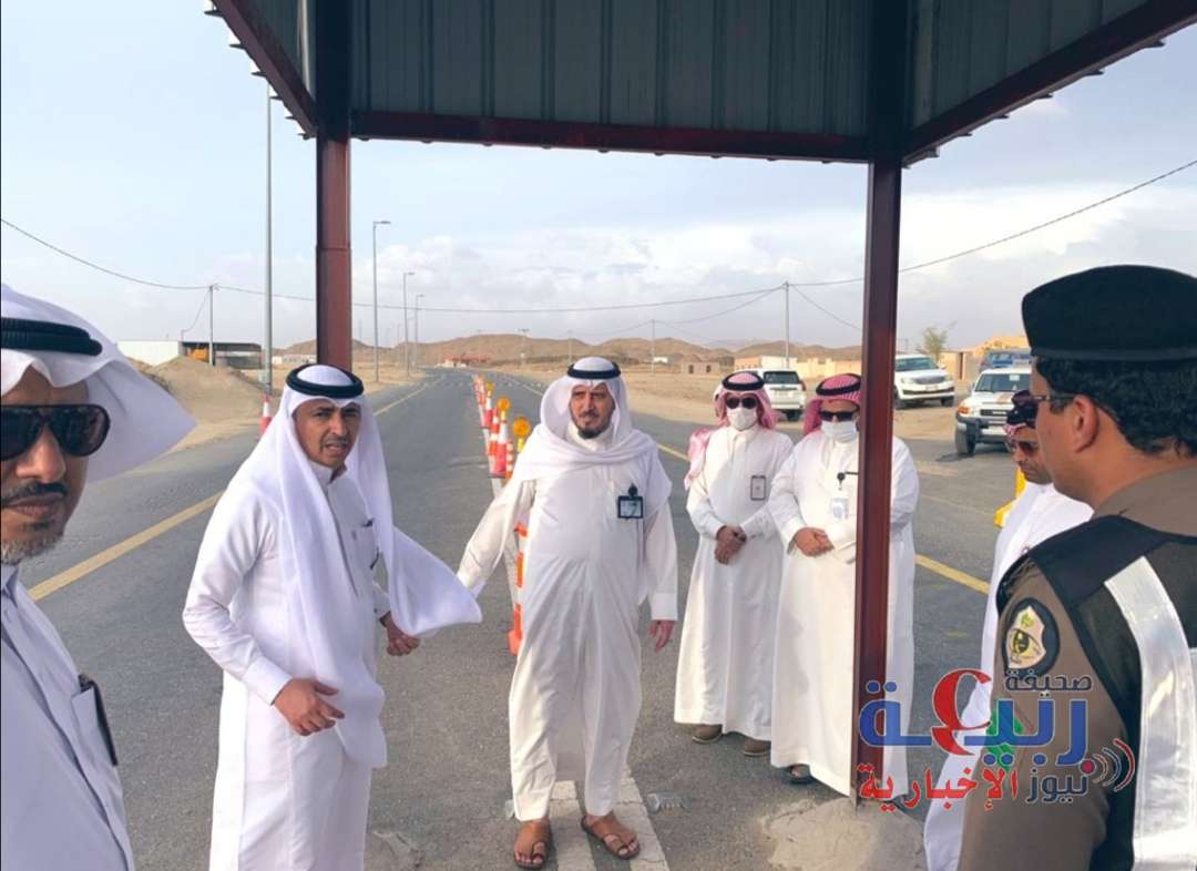 إنفاذاً لتوجيهات أمير منطقة عسير صاحب السمو الملكي الأمير تركي بن طلال -حفظه الله – وقف محافظ بارق الاستاذ مفرح البناوي ورافقه كلاً من رئيس مركز جمعة ربيعة الأستاذ عبدالرحمن الأحمري ورئيس بلدية بارق المهندس محمد مرزن ورئيس شرطة محافظة المقدم سالم الشهري ومدير القطاع الصحي بـبارق الأستاذ سليمان السلومي عصر اليوم على نقطة الضبط الأمني والفرز الصحي بمركز جمعة ربيعة وذلك من أجل تجهيزها حيث أنها تعتبر أحد المنافذ لمنطقة عسير .