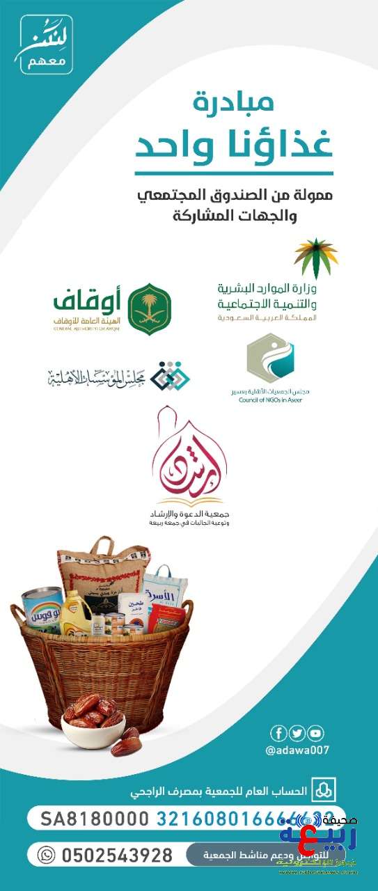 دشن رئيس مركز جمعة ربيعة المقاطرة الأستاذ /عبد الرحمن سعد الاحمري ، بحضور رئيس جمعية الدعوة والإرشاد وتوعية الجاليات بجمعة ربيعة الشيخ علي بن مفرح الربعي والذي قال لصحيفة لربيعة نيوز ان هذه المبادرة تستهدف العمالة المقيمة بالمركز من اجل تخفيف الاعباء المترتبة لجائحة كورونا