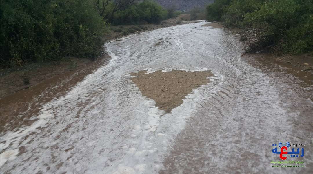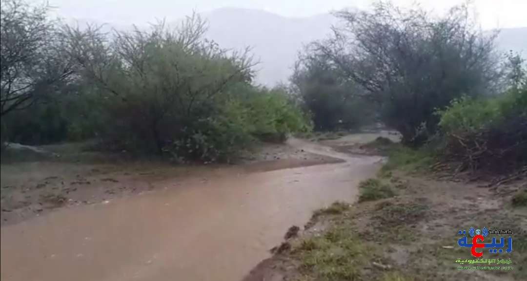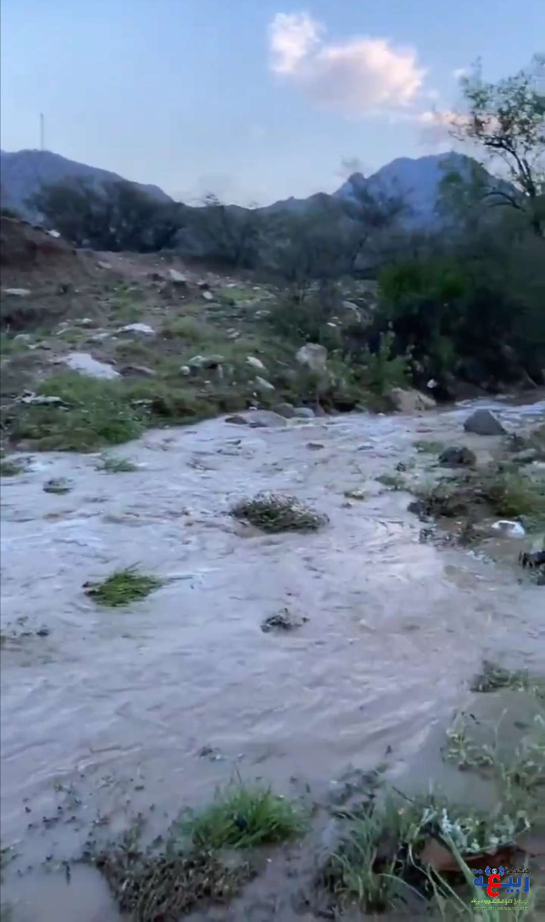 سال على أثرها عدد من الأودية والشعاب جعلها الله أمطار خير وبركة وعم بنفها ارجاء البلاد