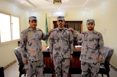 قلد قائد قطاع حرس الحدود بالحرث بجازان منصور القحطاني ومساعده ابراهيم يحيى صحفي الملازم محفوظ محمد الربعي رتبته الجديدة. ملازم اول.