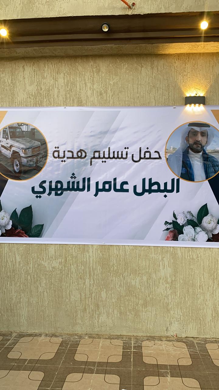 مركبة من نوع لاند كروزر نظير ماقام به من عمل بطولي حيث تمكن من إنقاذ شاب بعد أن جرفته مياه السيول بوادي أعشار