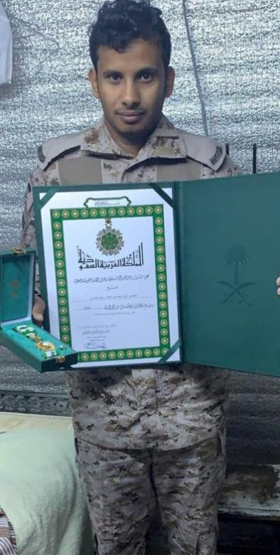 تقلد البطل الجندي أول عبده أحمد ربيح الربعي آحد أبطال الحد الجنوبي وسام الملك فيصل من الدرجة الثالثة لجهوده المبذولة في خدمة الدين والملك والوطن.