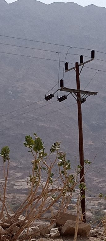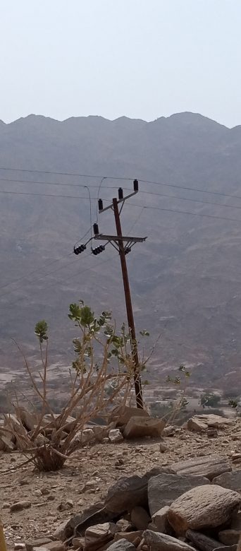 حصلت ربيعةنيوز على صور تظهر عمود كهربائي.ضغط عالي آيل للسقوط بقرية قحفن بربيعة المقاطرة