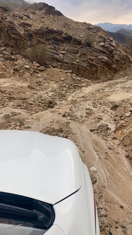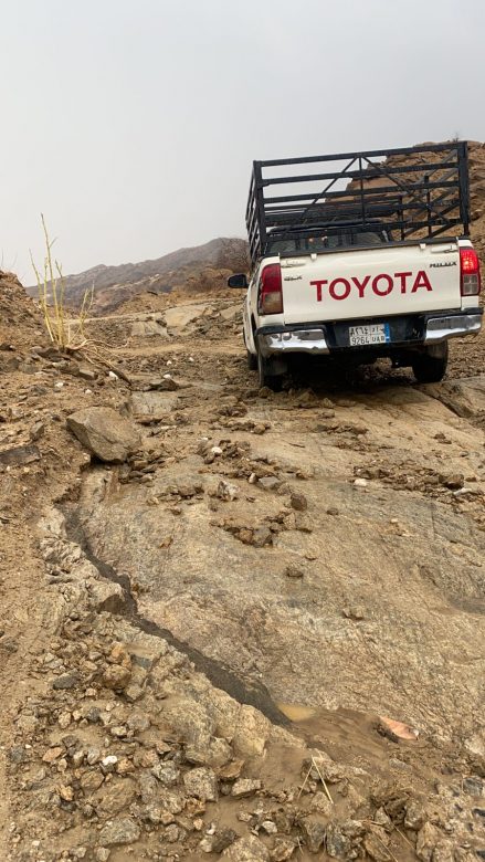 ويتضح من الصور انقطاع تام لطريق والذي أصبح من الصعوبة بمكان العبور من خلالة الا بمركبات الدفع الرباعي