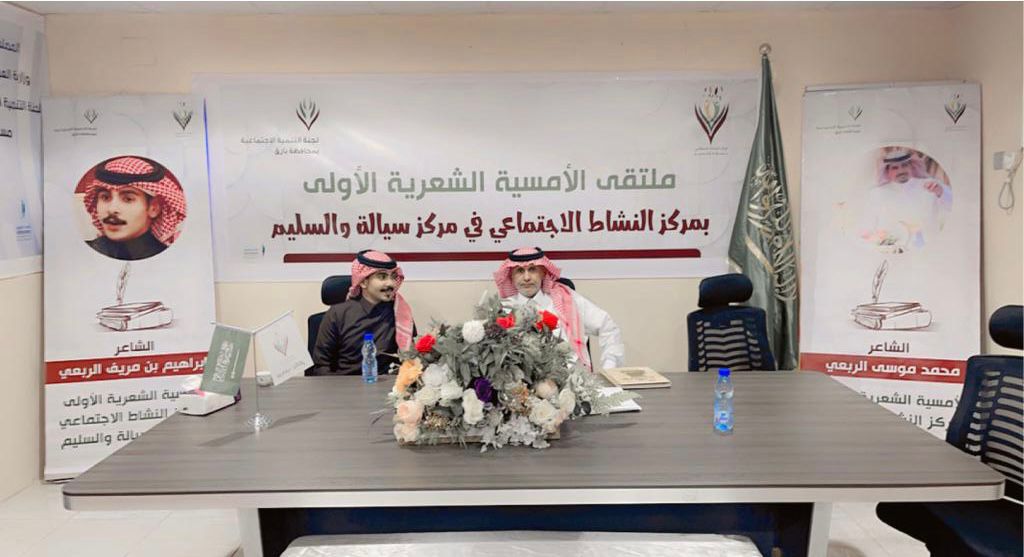 اقام مركز النشاط الإجتماعي بمركز سيالة والسليم الأمسية الشعرية الأولى ضمن انشطة الثقافة لهذا العام بحضور رئيس مركز سيالة والسليم الأستاذ محمد بن هادي الاسلمي ومشائخ القبائل والأعيان الشيخ فقيه موسى الربعي والشيخ حسن جحران الربعي حيث أقيمت الأمسية الشعرية بإدارة رئيس المركز الأستاذ موسى محمد الربعي وبمشاركة الشعراء الأستاذ علي محمد مجلف الربعي والشاعر إبراهيم مريف الربعي والشاعر محمد موسى الربعي وقت تنوعت أغراضها الشعرية فيما طغت عليها القصائد الوطنية.