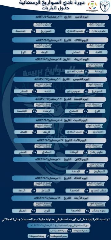 هذا ويقام اليوم لقاءين يجمع الأول فريقي نجوم ريدان وشباب التحدي بينما يتلقي الصواريخ فريق العاصمة في اللقاء الثاني.