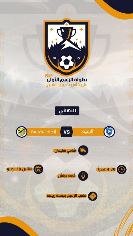 يقام عصر يوم الاثنين القادم نهائي دورة الزعيم الرياضية الأولى بغرب ربيعة المقاطرة على كأس