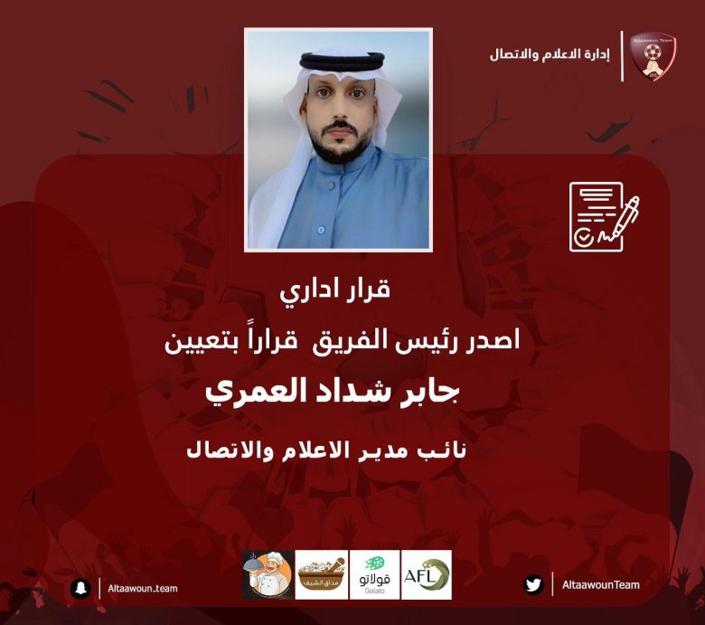 نائباً لرئيس النادي وجابر شداد العمري نائباً لمدير الاعلام والاتصال وزاهر احمد الربعي مدرباً للياقة