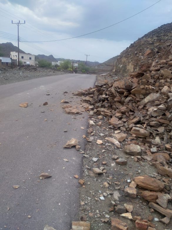 انهيارات صخرية بطريق قرية وادي السيال بربيعة المقاطرة