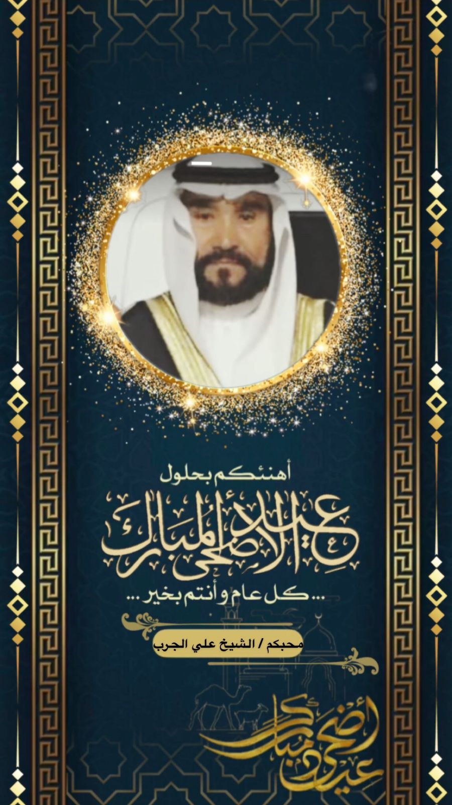 هنئ الشيخ .علي بن محمد الجرب شيخ قبيلة آل أحمد بربيعة المقاطرة خادم الحرمين الشريفين الملك سلمان بن عبد العزيز حفظة الله وولي عهدة صاحب السمو الملكي الامير.محمد بن سلمان حفظة الله وأمير منطقة عسير الأمير. تركي بن طلال بن عبدالعزيز بمناسبة عيد الأضحى المبارك للعام 1445