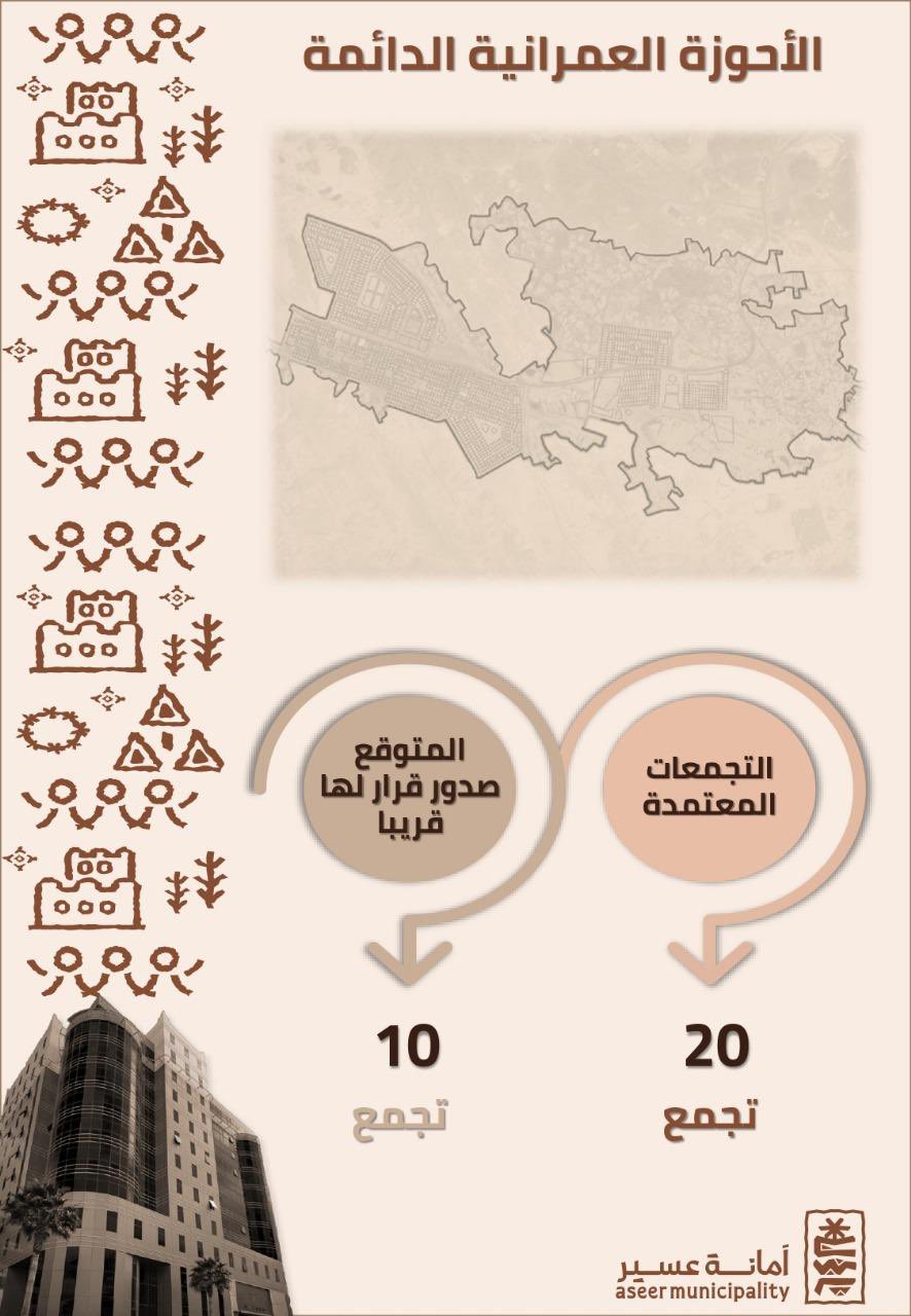 صدر اعتماد معالي وزير البلديات والإسكان بدعم ومتابعة سمو امير المنطقة للأحوزة العمرانية الدائمة لـ 20 تجمعاً سكانياً لتصبح ضمن النطاق العمراني وهي كالتالي: