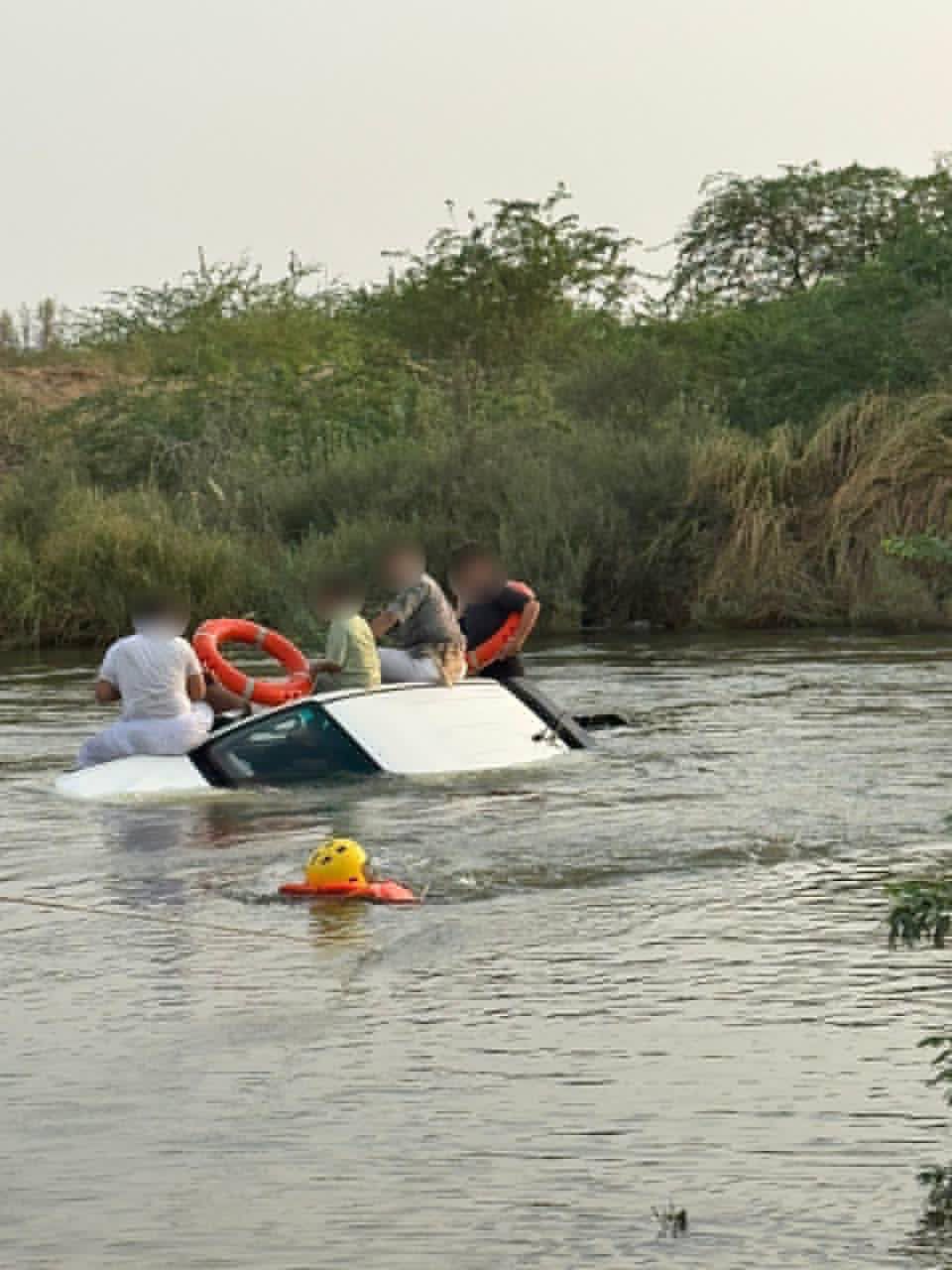 أنقذت فرق الدفاع المدني بمحافظة القنفذة خمسة أشخاص احتُجزوا داخل مركبة جرفها السيل أثناء جريان الأودية.